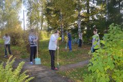 Ребята с радостью делают школьный парк красивее и чище.